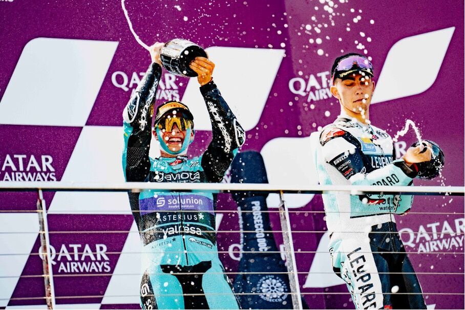 David Alonso (1): „Mislio sam da će danas biti teško pobediti. Ovaj vikend mi je bilo teško da ostanem fokusiran. Nakon osvajanja svetskog prvenstva, malo se opustiš i prestaneš da paziš na detalje. To mi se dogodilo juče u kvalifikacijama. Takođe, prvi put nisam radio na planu trke u subotu popodne i želim da se izvinim timu zbog toga. Danas sam se probudio potpuno fokusiran i sve je išlo kako treba. Ovo slavlje je posvećeno Rosiju, jer kada je on osvojio svoju jedanaestu pobedu u 125cc, slavio je ovako, i pošto sam danas izjednačio njegov rekord, hteo sam to da proslavim baš kao i on.”