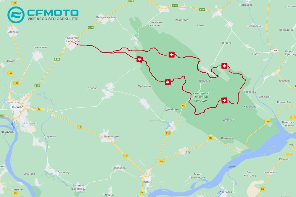 Mi smo se odlučili za polazak iz Banatskog Novog Sela a zatim seoskim putevima između njiva do Delibatske peščare. Naša mala ekspedicija imala je tri voila jedno CFMOTO CFORCE850 EXC ESP, i dva CFORCE550 vozila.