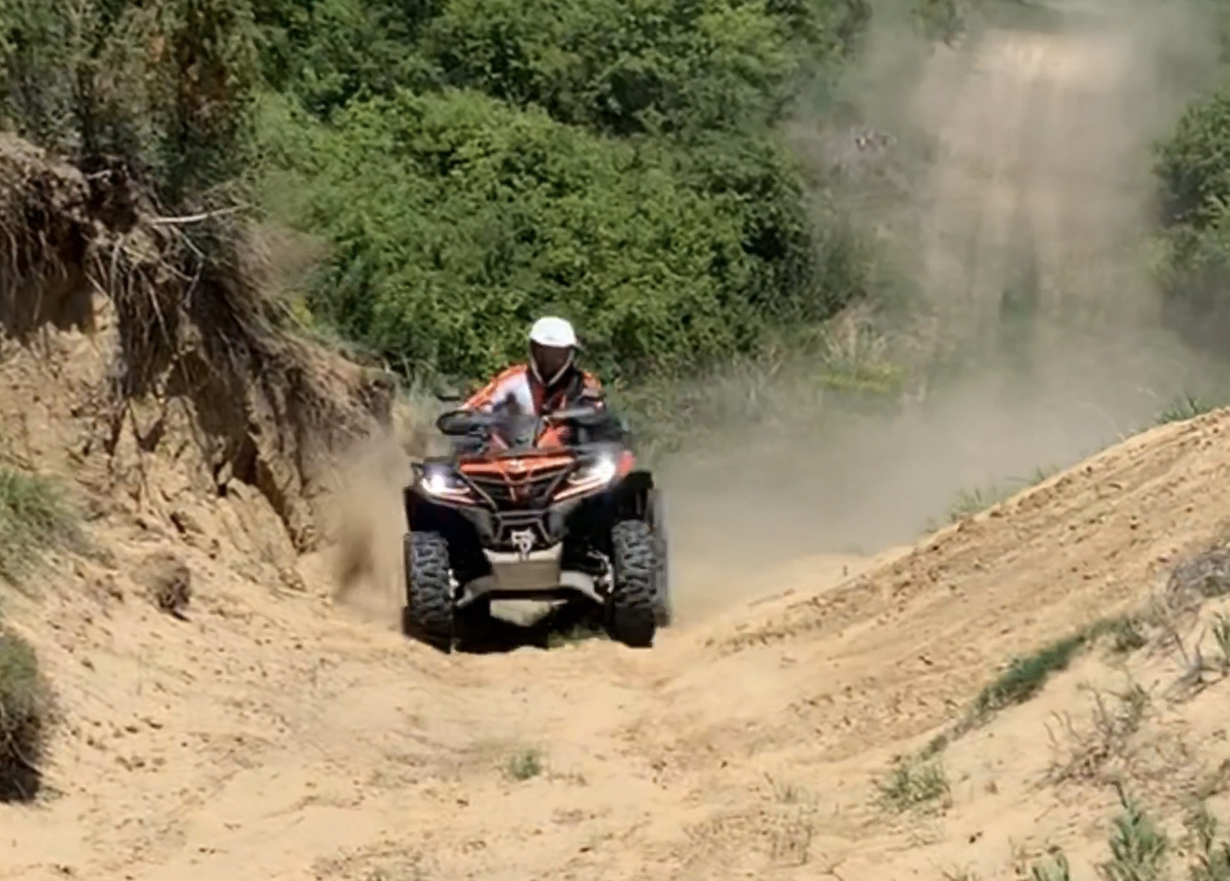 Slike ovog predele nikako ne mogu dočarati tu lepotu ali i nagibe koji očekuju ATV vozače. Na ovom terenu ima deo za sve vozače od početnika pa do onih koji vole ekstremnu vožnju. Najveći nagib je savladao upravo CFORCE550 koji se sa lakoćom popeo da samog uzvišenja i zadao nama zadatak da krenemo za njim. Treba voditi računa jer tokom uspona treba uvek imati na umu da je ispod vas pesak, koji nikako nije saveznik ATV vozačima.