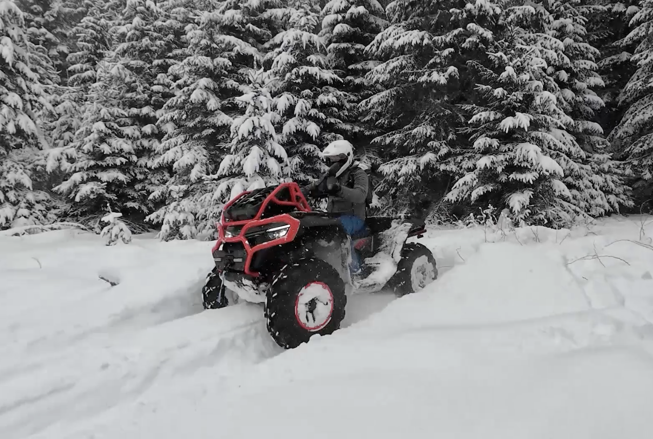 CFORCE X10 MV nije ni osetio opterećenje – njegova v-twin snaga od 90 konjskih snaga, visok klirens i odlična trakcija omogućili su da lagano vuče vozilo kroz dubok sneg, bez ikakvog proklizavanja ili gubitka stabilnosti. Gasni amortizeri dodatno su pomogli u održavanju ravnoteže na neravnom terenu, dok su snažni pneumatici osigurali čvrsto prijanjanje i siguran prolaz.