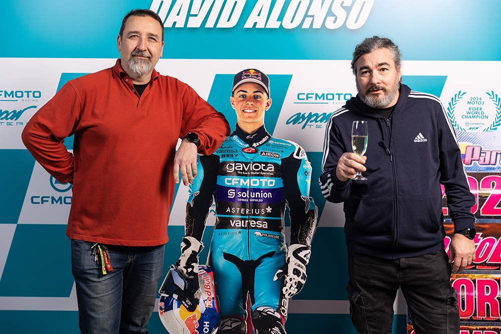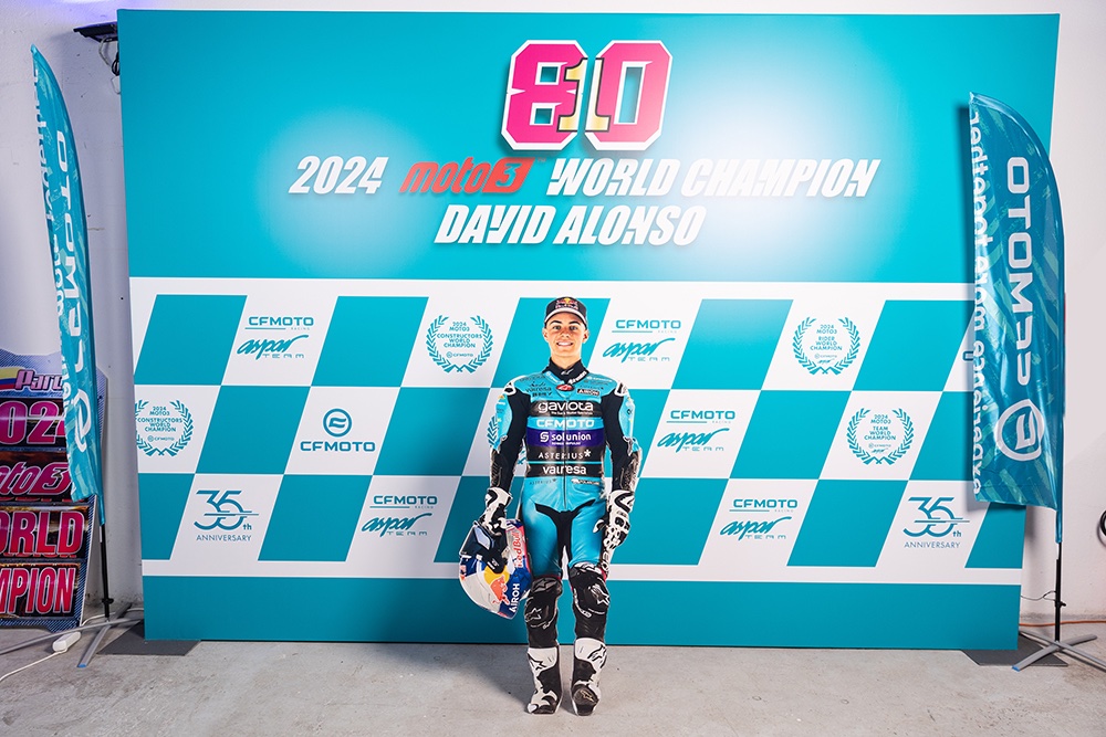 Centralna figura ovog događaja bio je David Alonso, naš mladi vozač koji je briljirao tokom sezone i doneo CFMOTO-u prvu svetsku titulu u Moto3 klasi. Njegova posvećenost, smirenost i neverovatan talenat izdvojili su ga kao jednog od najperspektivnijih vozača današnjice.