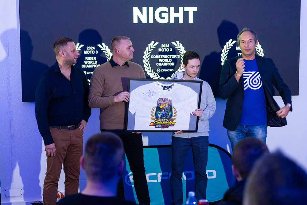 „Ovo je neverovatan trenutak za mene i za ceo tim. Zahvalan sam na podršci koju sam imao tokom čitave sezone. Ponosan sam što sam deo CFMOTO porodice i pozdravaljam sve u Beogradu“ rekao je David tokom svog obraćanja prisutnima preko video poruke, dok su aplauzi odjekivali salom.