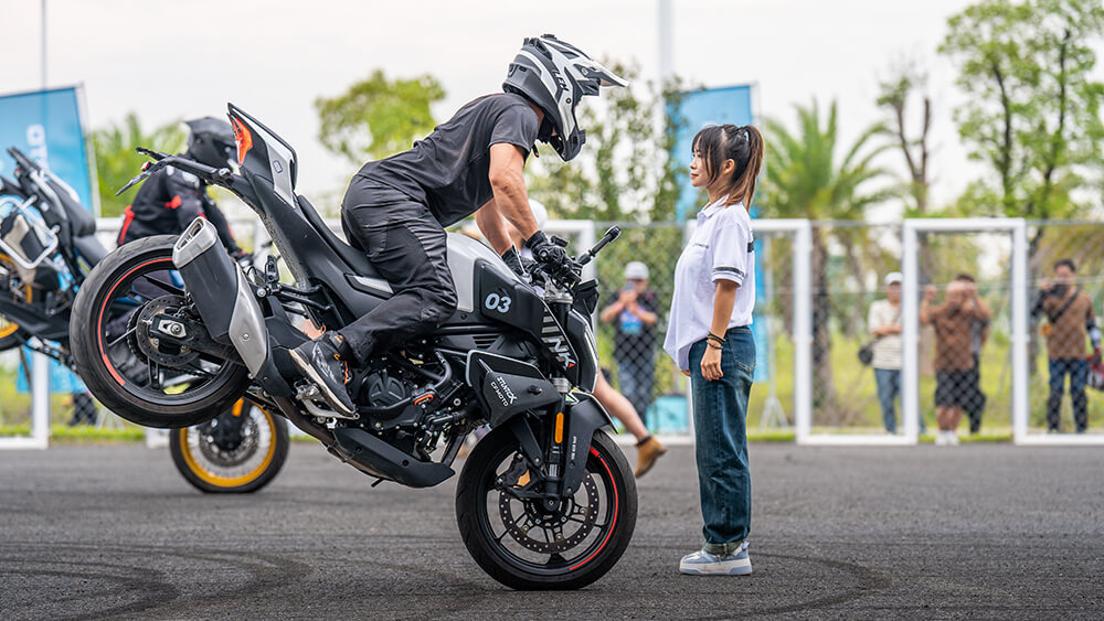 Kako se jutro odmicalo, osunčana trkačka staza u Džodžuu postajala je sve više i više živopisna. Nije bila samo scena impresivnog otvaranja ili defilea motocikala koji je privlačio pažnju. Jedna posebna atrakcija koja je izazvala pravu senzaciju među posetiocima bila je prilika da provozaju najnovije modele CFMOTO motocikala na sertifikovanoj trkačkoj stazi.