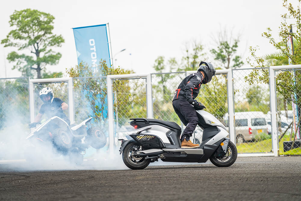 Ali stunt show ne bi bio potpun bez nečeg posebnog. Na scenu je stupio i Zeeho AE8S+ skuter. Elegantan i moderno dizajniran, skuter se kretao s lakoćom, demonstrirajući svoje električne performanse.