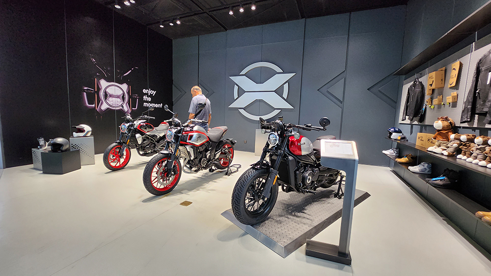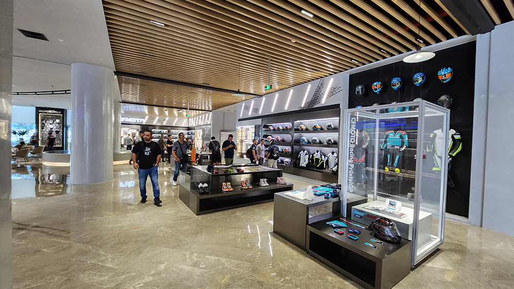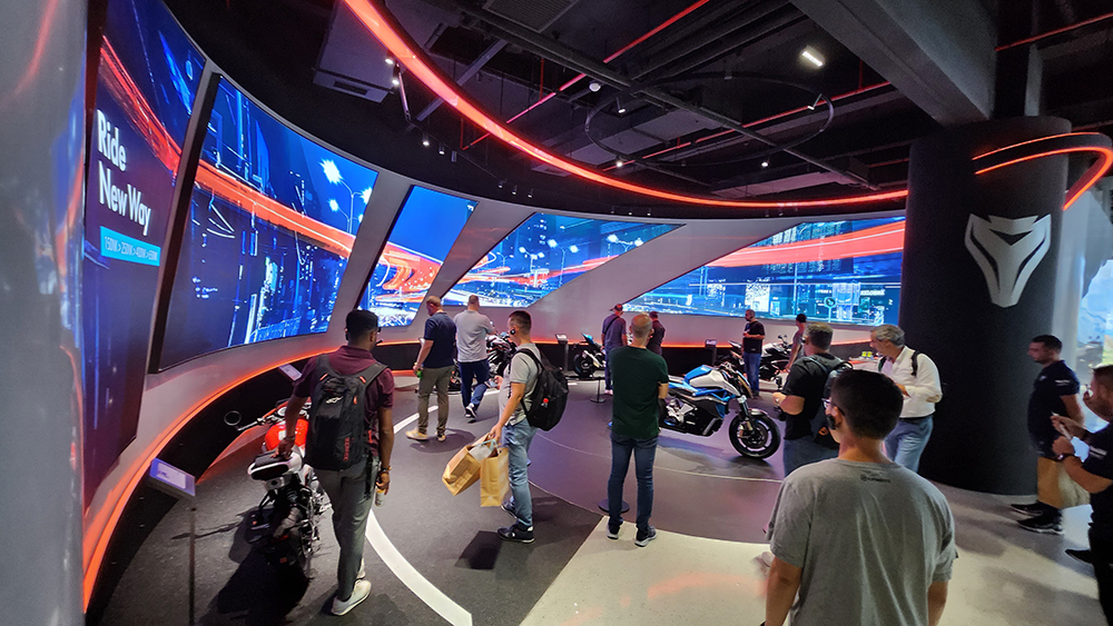Visoki plafoni i minimalistički dizajn salona omogućili su posetiocima da se fokusiraju isključivo na motocikle. Detaljni LED informacioni panoi pružali su detalje o specifikacijama, tehnologiji i inovacijama koje svaki model poseduje.