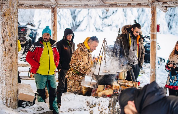 Naravno ova hedonistička tura ne bi bila potpuna bez gastronomskog doživljaja koji smo priuštili našim gostima. Vrhunska vozila, duboki sneg, lepo vreme, adrenalin i vrhunski specijaliteti uz kotlić su upotpunili ovaj događaj.