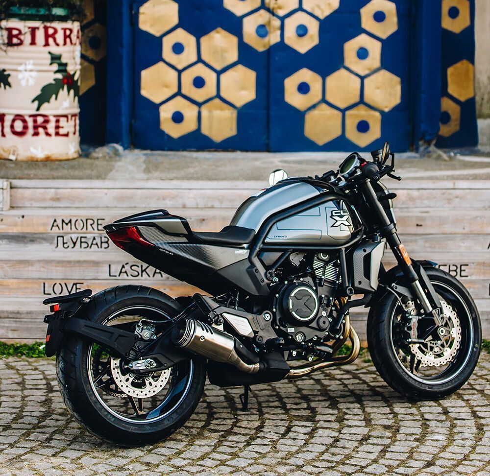 Okrugla LED svetla fantastično izgledaju uz zatamnjeno prednje vešanje dok će okrugli retrovizori i rezervoar za gorivo u stilu 80-tih godina XX veka privući pažnju svakog bajkera. Ovaj novi snagator iz CFMOTO ergele je standardno opremljen sa Cruise Controle – Tempomatom, ABS dvokanalni kočionim sistemom, Ride By Wire – elektronskom kontrolom gasa, Brembo kočnicama, KYB vešanjem, Upside Down prednjom viljuškom, digitalnim displejem i LED osvetljenjem.