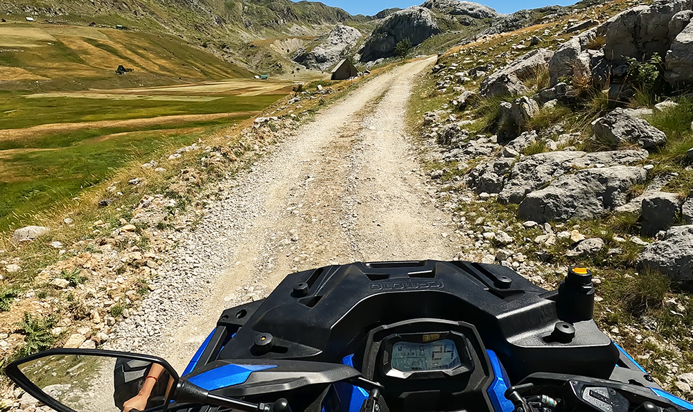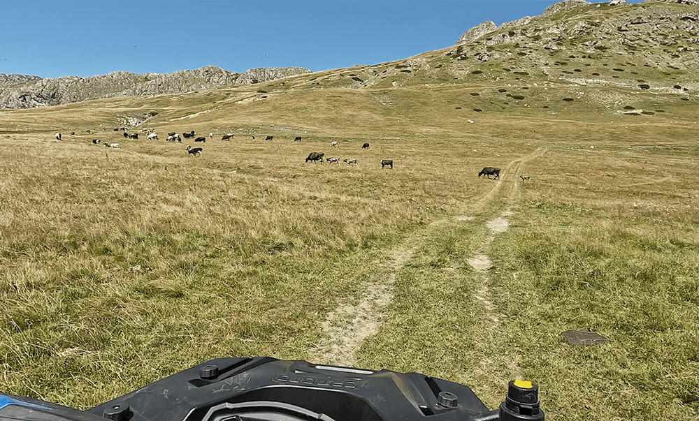 Opčinjeni vožnjom našeg CFMOTO CFORCE 1000 nismo ni primetili kada smo zašli u drugačije predele. U predele, gde se sudaraju livade i kamen. Okruženi tom čudnovatom simbiozom, vozili smo kvad putem negde gore, u visine, kojima se činilo da nema kraja, da dosežu u beskonačnost. Samo nas je pogled na Veliki i Mali Žurim podsećao da idemo nebu pod oblake, u srce planine.