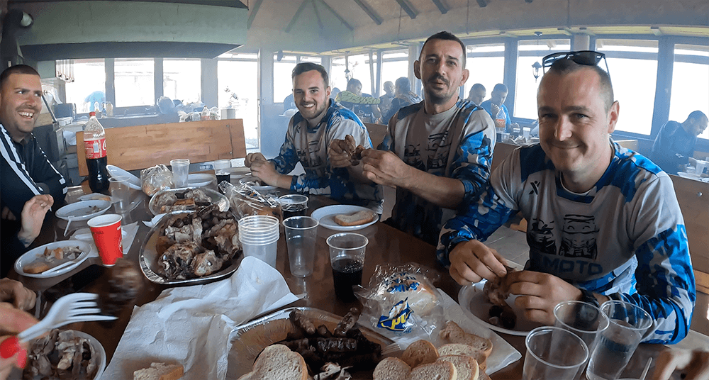 Nakon završene vožnje i okupljanja vozača u planinarskom domu Motka započeo je ručak gde su se razmenjivali utisci sa vožnje i uživalo u nadaleko poznatoj mladoj “janjetini” i sarajevskim ćevapima. Postoji neka romantičarska simbolika kad je janjetina iz Bosne u pitanju. Kad neko kaže da vas vodi na janjetinu u Bosni, osetite se posebno počašćeno, kao da obrok koji će uslediti sa sobom nosi neku notu poštovanja i poznate sarajevske gostoljubivosti. Tako smo se i mi osetili dok smo ručali sa našim domaćinima i ljubiteljima ATV vožnje.