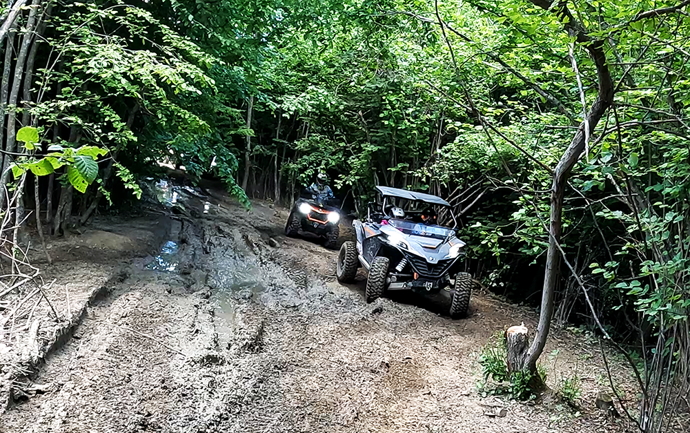 Kako je i sam organizator pre polaska na Panoramsku vožnju naglasio, planirano je da se na nekoliko tačaka susretnemo sa vozačima Extreme staze i uživamo u njihovim veštinama. Čim smo sišli sa asfalta dočekale su nas daleko poznate šume oko Vogošće i njihova bujna vegetacija koja se uzdizala iznad zemljanih staza na kojima su naravno dominirali usponi i nizbrdice.